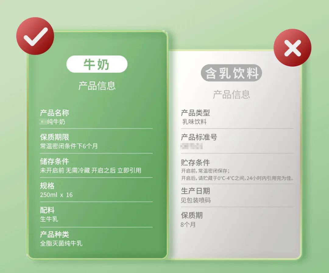 看懂产品名称和产品类型,平时我们只看外观或者不仔细看的话,很难发现一些产品其中的“猫腻”,出现“李逵”和“李鬼”分不清,要仔细看食品名称来区别。