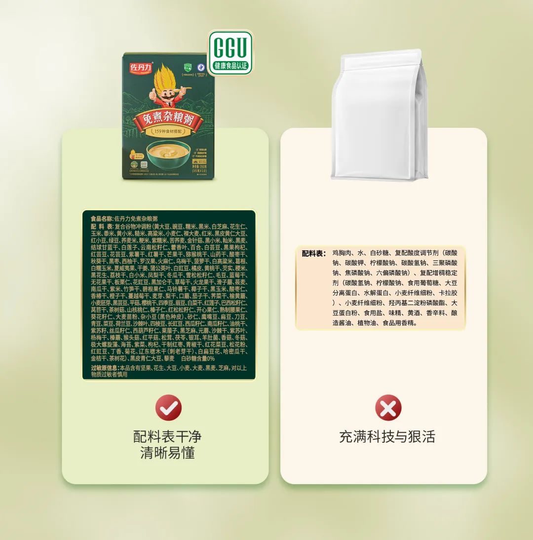 2023年2月,免煮杂粮粥荣获全球绿色联盟食品安全认证中心的《健康食品认证》,是佐丹力健康产业集团长期在健康食品领域不懈探索的成果,充分印证了佐丹力出品遵循严格的生产、加工和检测标准,守护食品安全,真正为消费者的健康保驾护航! 选择健康食品,记住“关键要素”,读懂食品标签,减少“科技与狠活儿”,转发给朋友和家人,共同选择放心的健康食品。