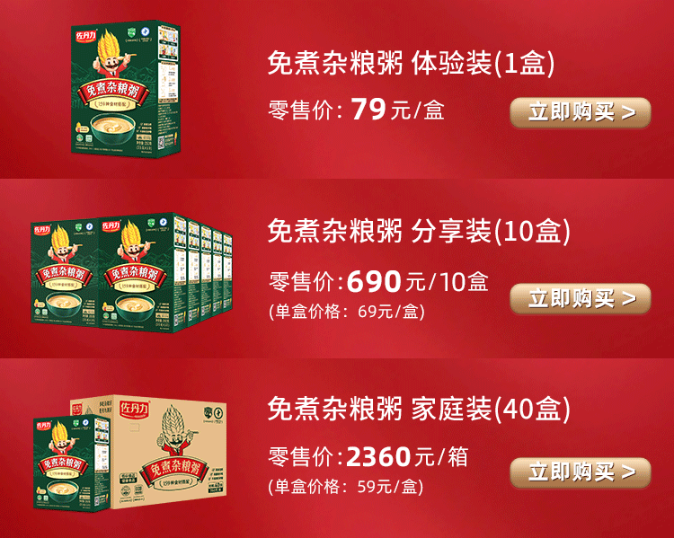健康食品认证是全球绿色联盟(北京)食品安全认证中心(GUU)推出,在国家认监委备案的健康食品认证项目。健康食品指采用纯天然材料或纯天然动植物提取物,或纯天然原材料和纯天然动植物提取物混合的加工食品,并保留或优化了食品原有的营养价值,而且其营养价值的含量和危害因素的控制达到了规定要求的食品。符合《健康食品认证》的产品,对添加剂、真菌毒素、污染物、农药残留等都有严格的管控标准。 免煮杂粮粥,甄选谷类、豆类、坚果、种籽 、花朵、菌藻等9大类159种天然食材,配料表干干净净,添加0反式脂肪酸、0钠,营养宣称上符合国家“高蛋白质”“高膳食纤维”的标准,而且含有多种维生素和矿物质,深受消费者喜爱。